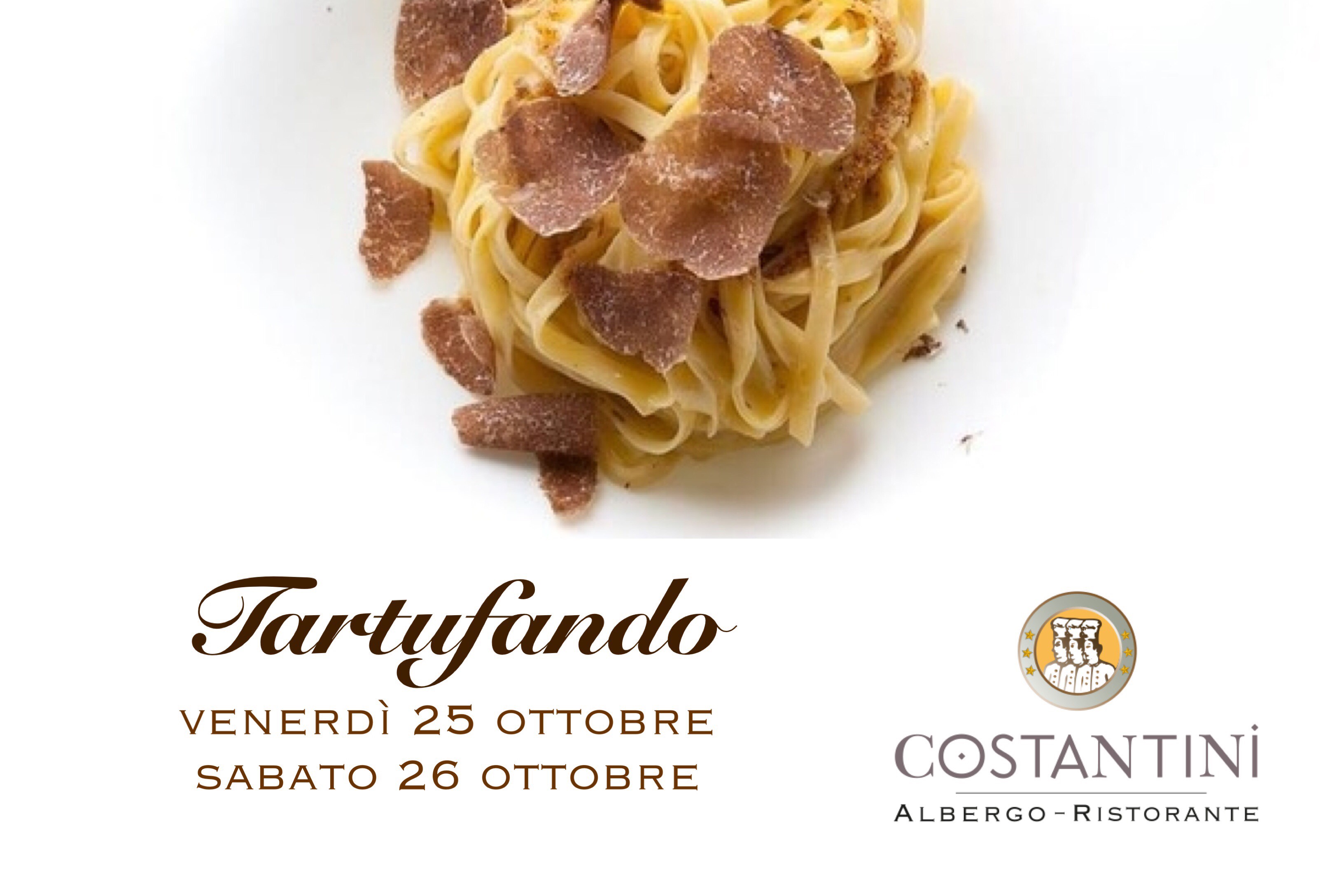 Il Ristorante Costantini è lieto di invitarvi venerdì 25 esabato 26 Ottobre ore 20.00 ad una cena degustazione d’eccezione dedicata al Re indiscusso della tavola d’Autunno, sua maestà il Tartufo. L’evento è stato organizzato in due serate identiche per rispondere alla grande richiesta degli estimatori di questa specialità, scegliete la serata che più vi aggrada.