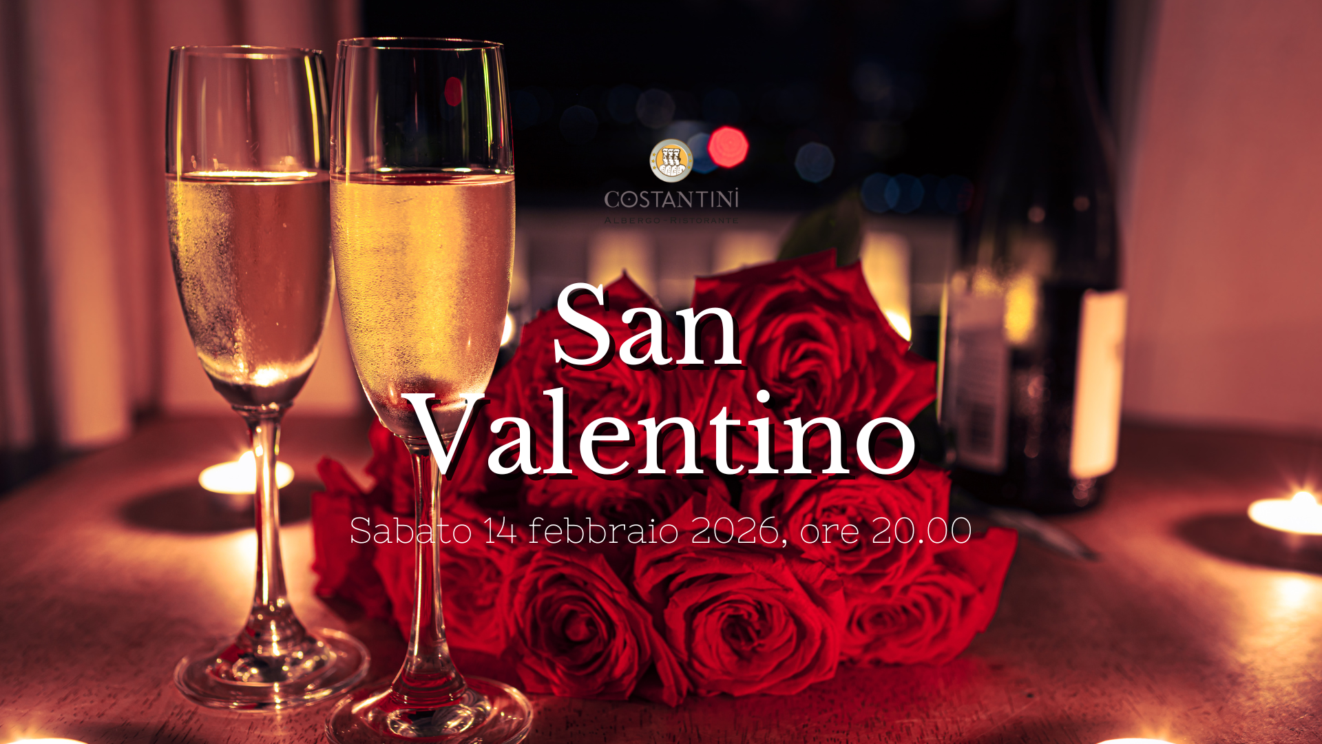 Il Ristorante Costantini è lieto di invitarvi a celebrare l’amore in tutte le sue forme nella magica atmosfera della serata di San Valentino, venerdì 14 febbraio alle ore 20.00.