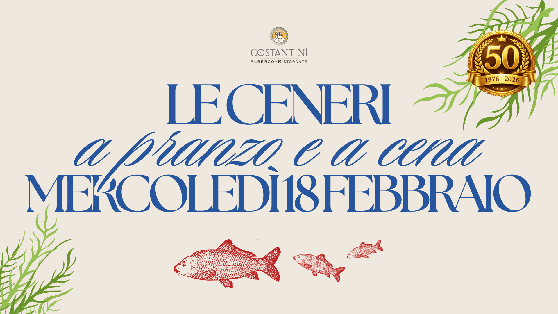 In occasione della giornata delle Ceneri, il Ristorante Costantini è lieto di proporre uno speciale menù che potrete gustare a pranzo e a cena.
